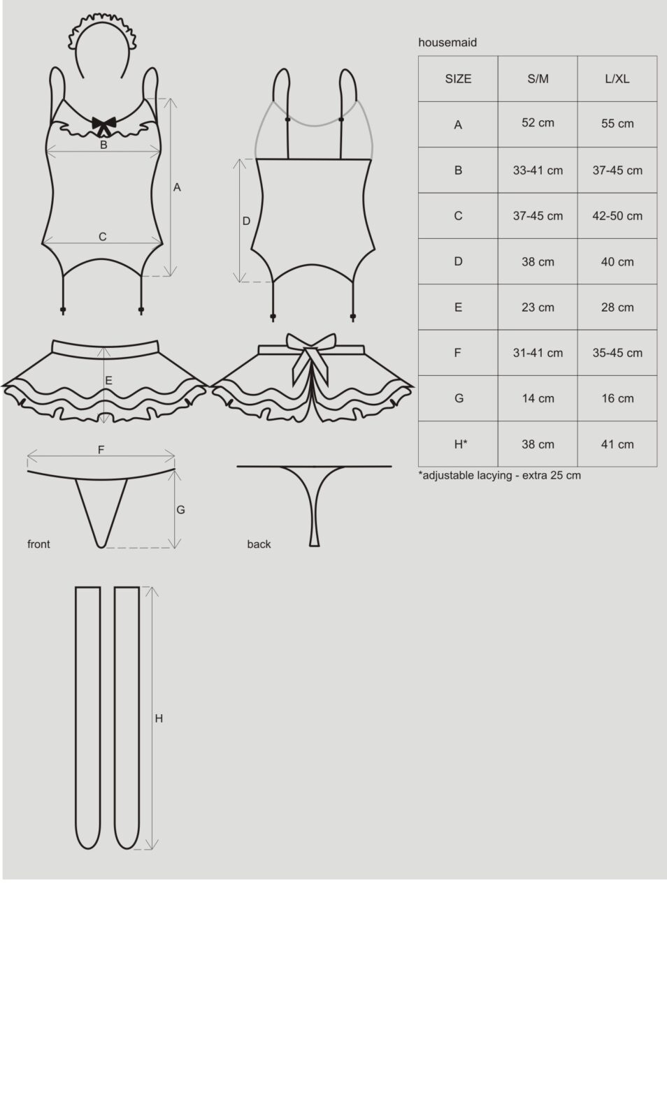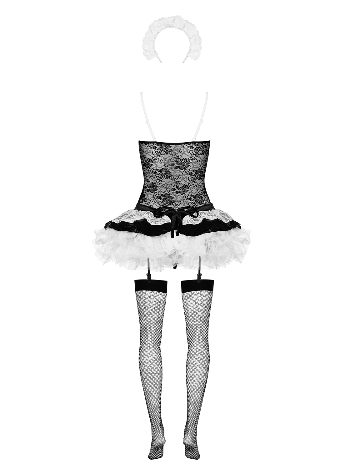 - Komplekti kuulub korsett, tüllseelik, stringid,sukad ja peavõru.
