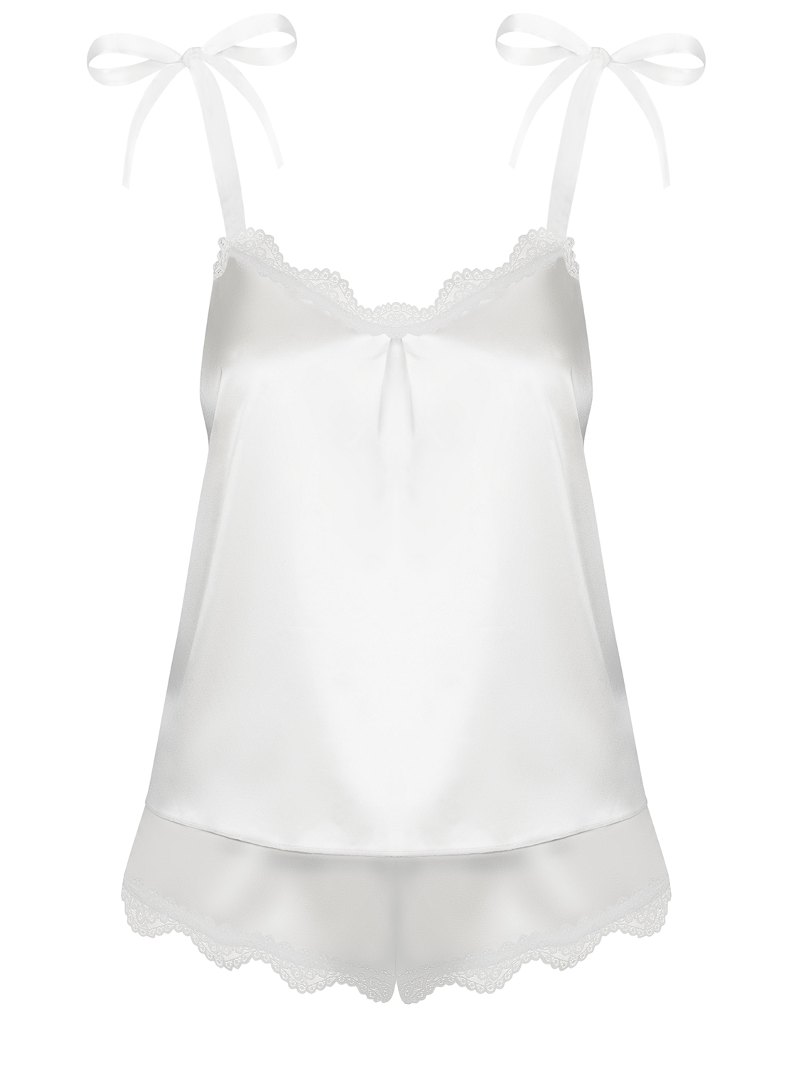 - Top ja püksid kaunistatud pitsist ääristusega.