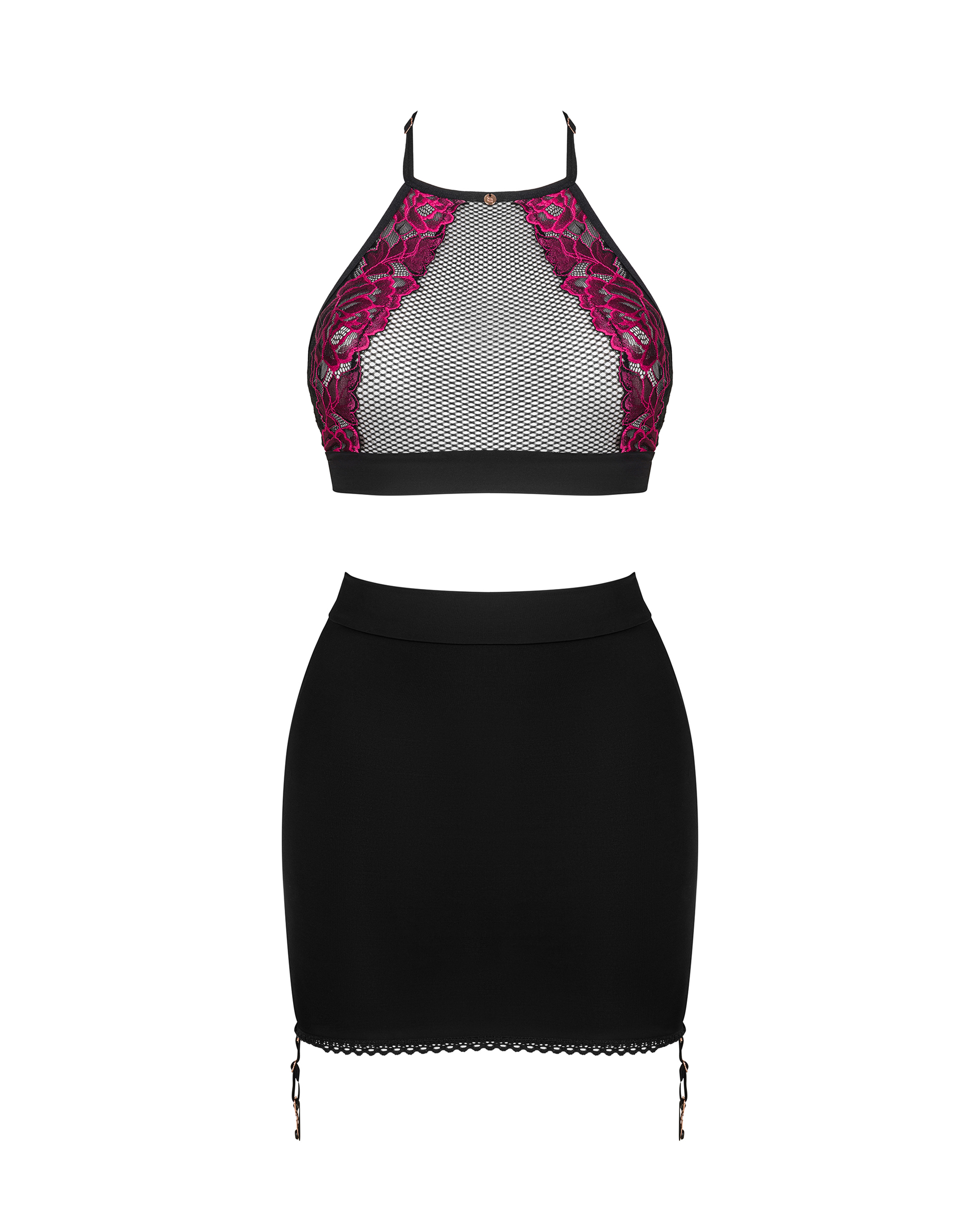 - Top võrgust ja kaunistatud roosimustrilise pitsiga.