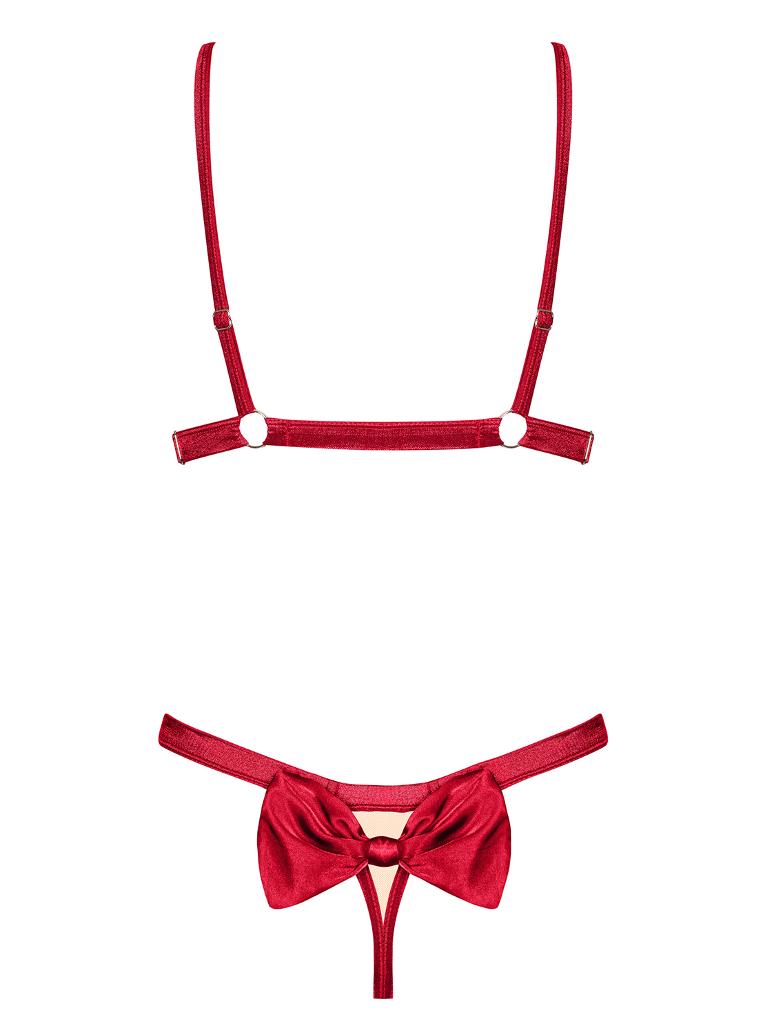 - Avatud rinnahoidja mida kaunistava punased satiinist lipsukesed.